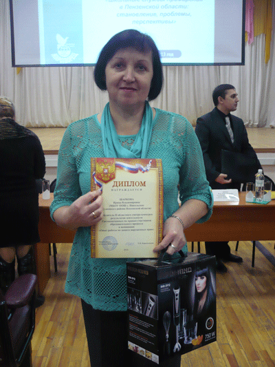 В 2010 году стала лауреатом областного конкурса "На лучшего специалиста, работающего с семьей" .